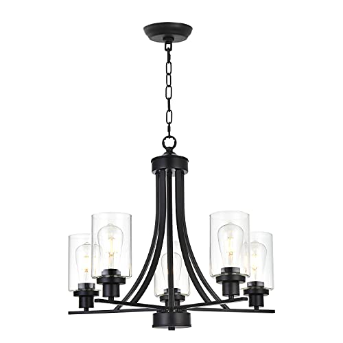 - 🌜 5 Light Glass Chandelier: This contemporary chandelier with high clear glass shades,it is an elegant update for traditional and modern homes alike.It's the perfect light fixture to install in kitchen, island, dining room,living room,foyers ,hallway,bedroom,coffee bar, lobby, restaurant and any space you like.